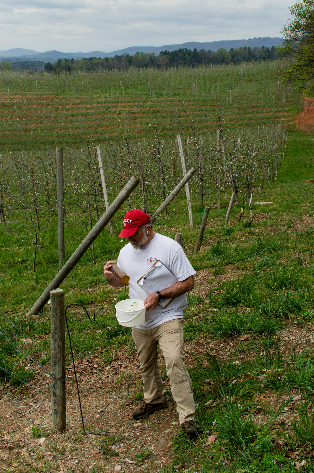 Oriental Fruit Moth: Biofix at the research station in Henderson County was set on 12 April, and off the mountain in Cleveland County it typically occurs about one week earlier. In orchards using mating disruption for OFM, insecticidal control of the first generation is not necessary, so focus on plum curculio and rosy apple aphid if relevant. However, where mating disruption is not used, an insecticide effective against this pest is recommended to control the first generation.